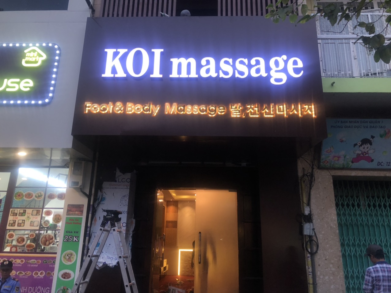 Alu trắng + chữ inox vàng LED ánh vàng (rất hợp spa, showroom)