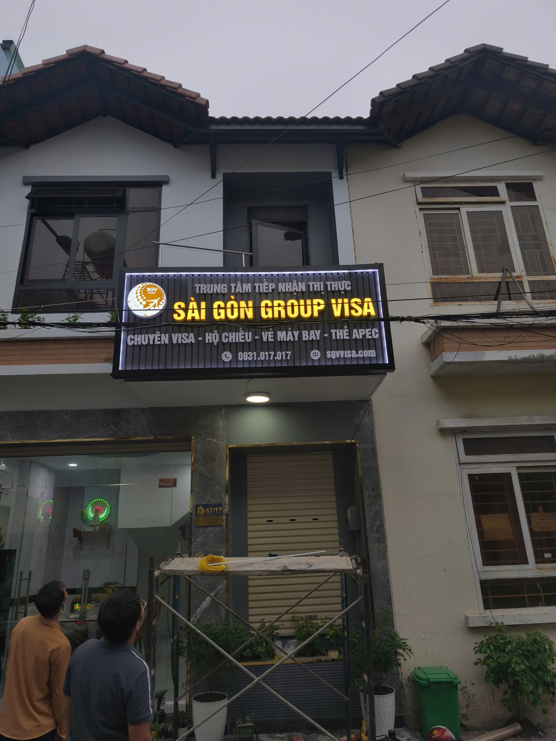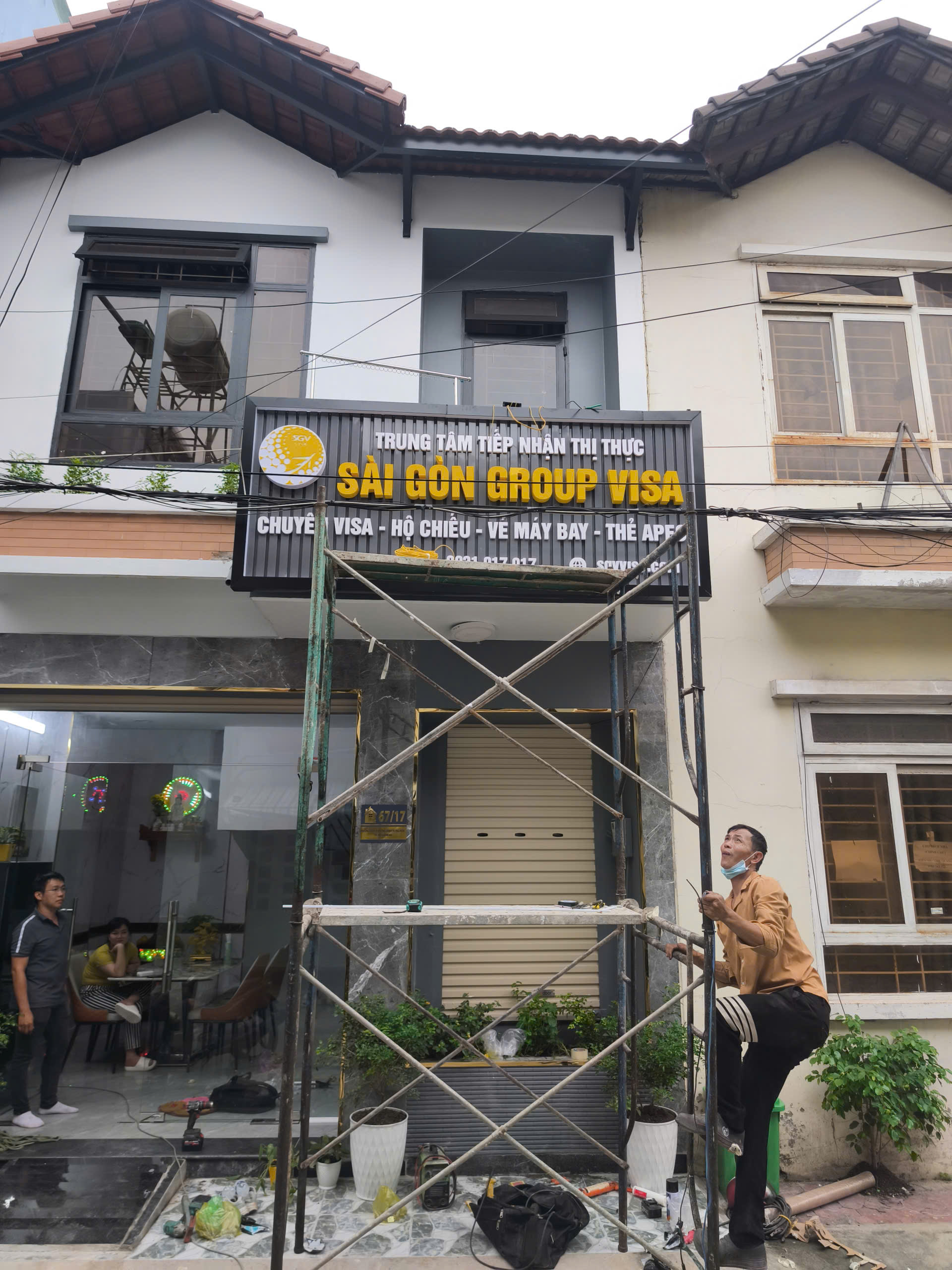 Trên nền lam có thể gắn chữ nổi mica, inox, alu, kết hợp đèn LED hắt sáng để tăng khả năng nhận diện vào ban đêm.