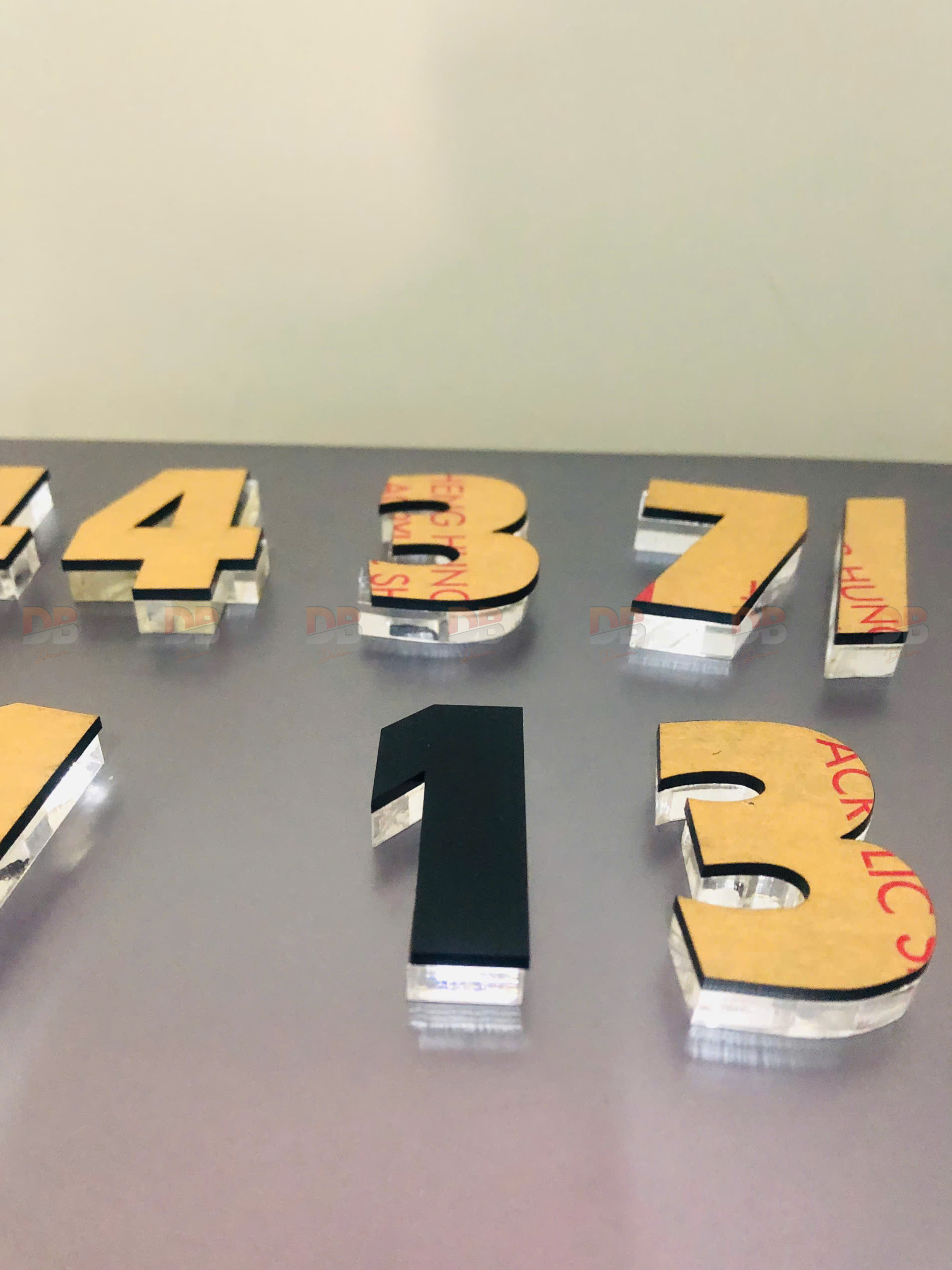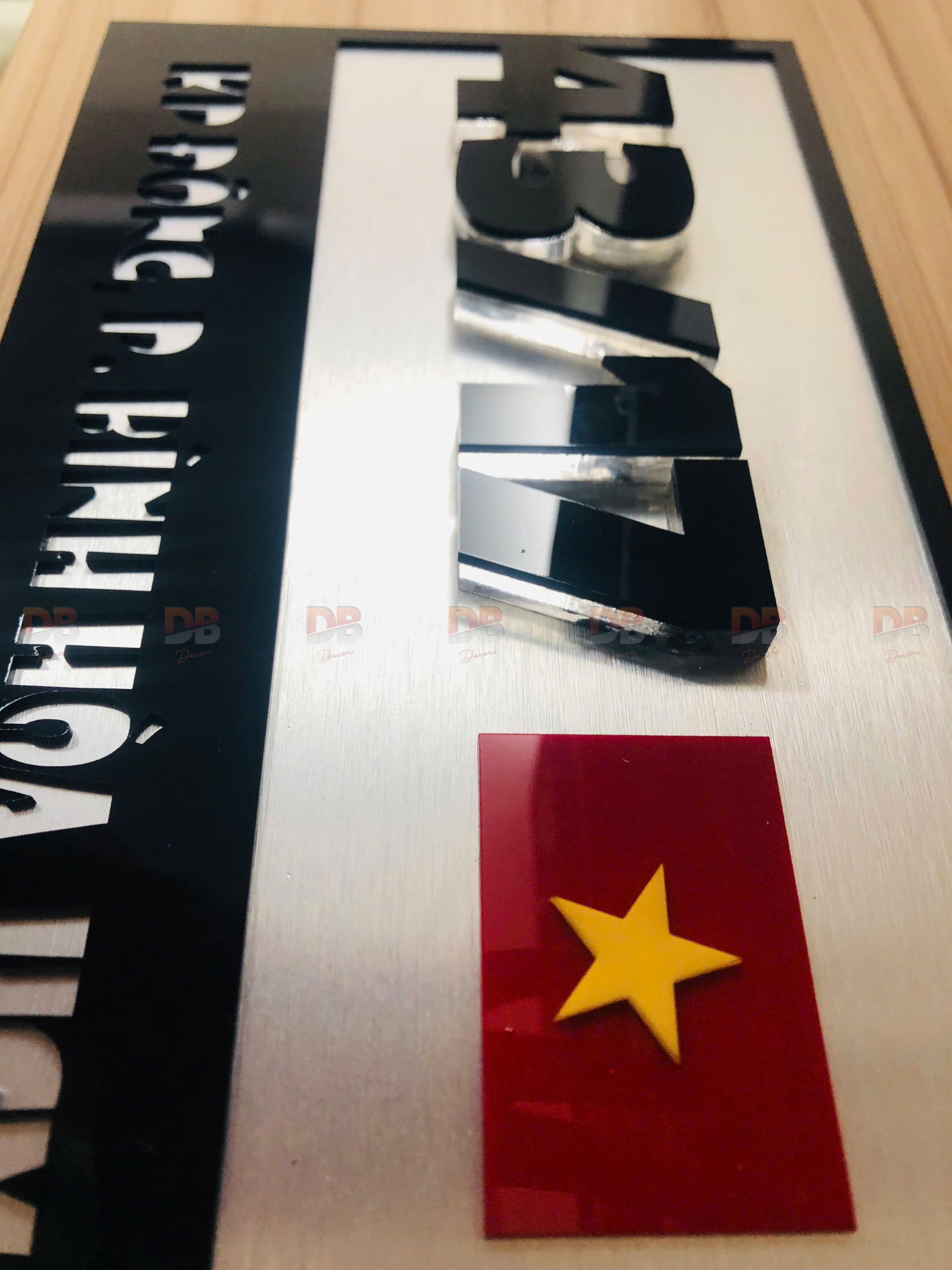 - Số nhà: Mica đen cắt laser sắc nét, lót mica trong phía dưới tạo viền “floating” tinh tế; mép cắt bóng như gương.