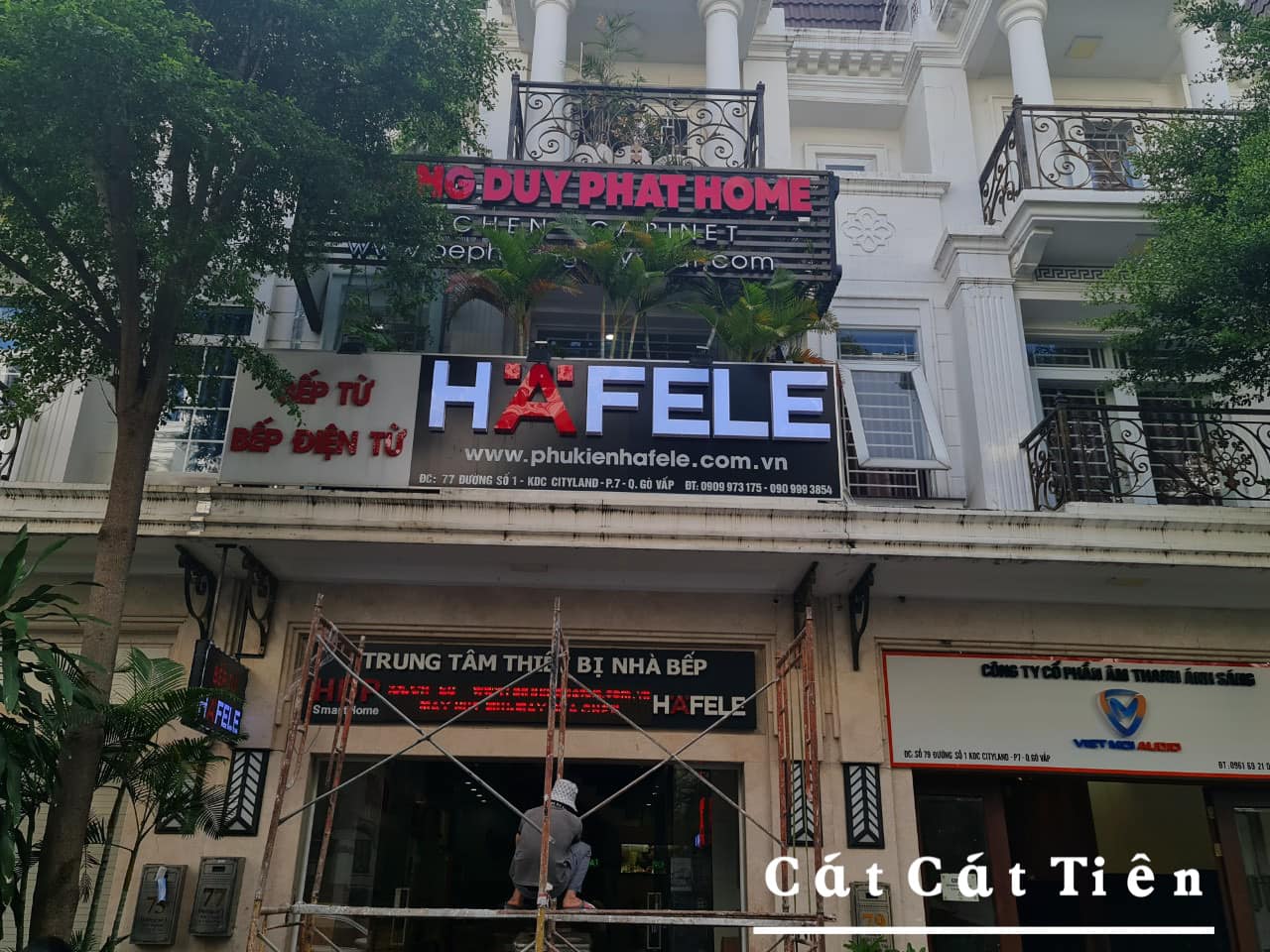 Hiệu ứng: Tạo sự tập trung vào logo và tên thương hiệu, rất rõ nét, dễ đọc từ xa.