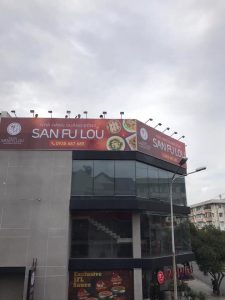Hộp đèn Hiflex: Nếu kinh doanh buổi tối, hãy làm hộp đèn bạt Hiflex có đèn tuýp bên trong để tăng độ nhận diện, nhưng hãy chú ý thiết kế màu sắc thật bắt mắt để bù lại sự đơn giản của chất liệu.