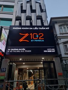 Khắc phục: Sử dụng các cặp màu tương phản mạnh như Vàng - Đen, Trắng - Đỏ, Trắng - Xanh dương. Nếu dùng chữ nổi (Inox, Mica), hãy chú ý đổ bóng hoặc viền LED để tách biệt chữ ra khỏi nền.